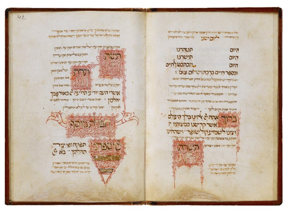 The 20th-century linguist Roman Jakobson wrote that certain sounds carry inherent meaning—that sound can evoke feeling before words ever begin. He also described the poetic function of language: when the shape of what’s said becomes part of what it means. This manuscript lives at the intersection of those two ideas. The scribe doesn’t just describe the shofar, he traces its voice. In black and red ink on parchment, he renders sound as symbol—thunder, groaning, glory.